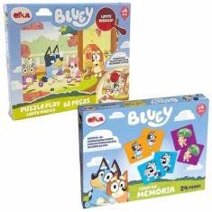 Kit 2 Jogos Bluey: Jogo Da Memória 24 Peças + Quebra Cabeça 60 Peças C