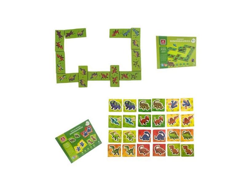 Kit 2 Jogos Dinossauros - Dominó + Jogo Da Memória - Educativos Em Mad