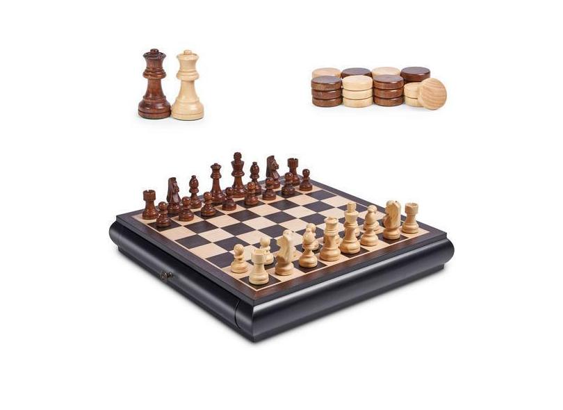 Conjunto de jogos de damas de xadrez VAMSLOVE, tabuleiro de madeira 15