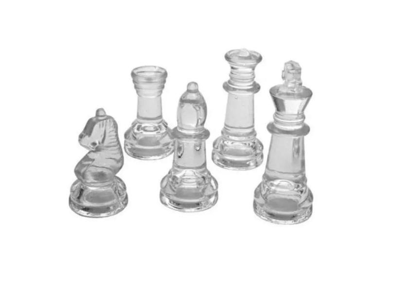 Jogo De Xadrez Tabuleiro E Peças Em Vidros Decoração