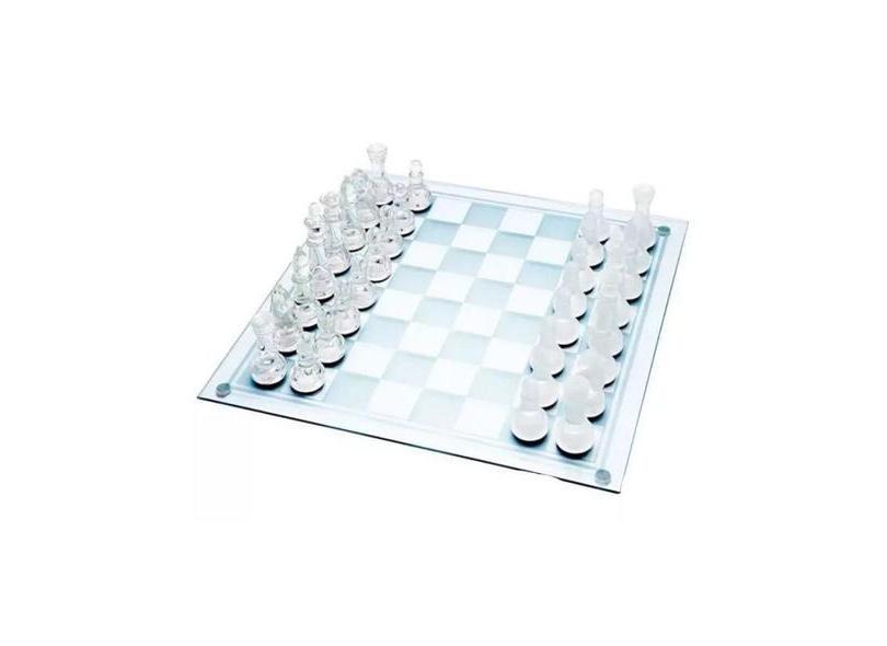 Jogo De Xadrez Tabuleiro E Peças Em Vidros Decoração 25X25cm - Nova