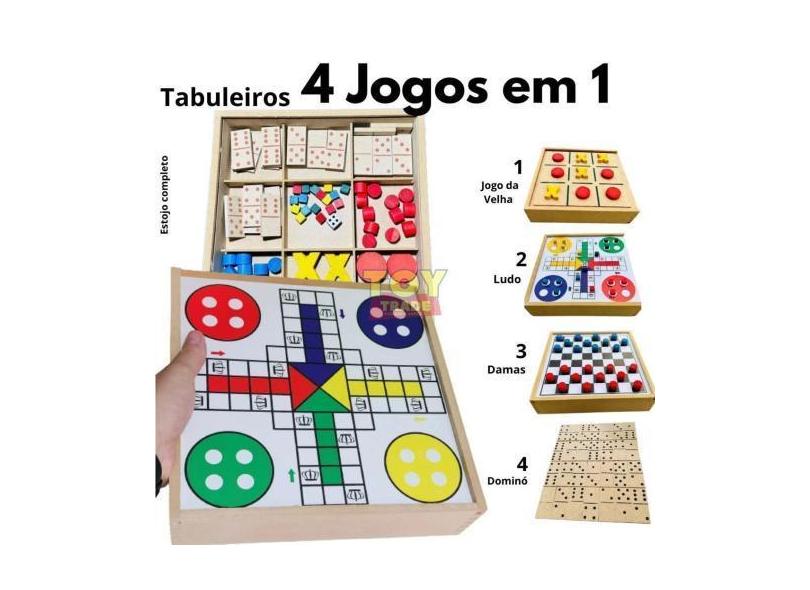 O menor preço encontrado no Brasil para Jogo Tabuleiro 4 Em 1 Madeira - Ludo, Damas, Velha, Dominó - Zaramela atualmente é R$ 39,90.