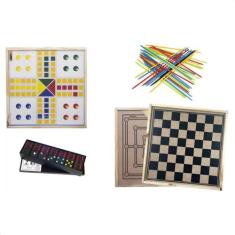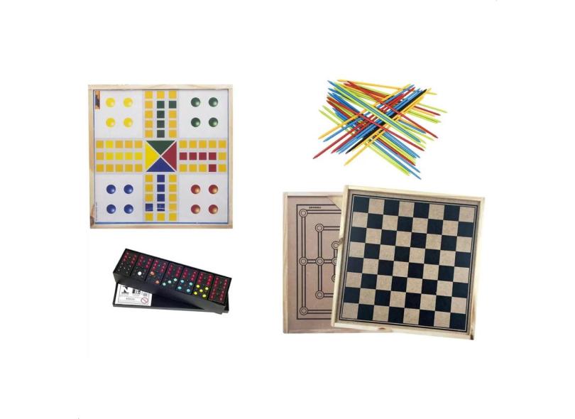 Jogo Tabuleiro 5 em 1 Dama Trilha Dominó Ludo e Vareta Sports Mania