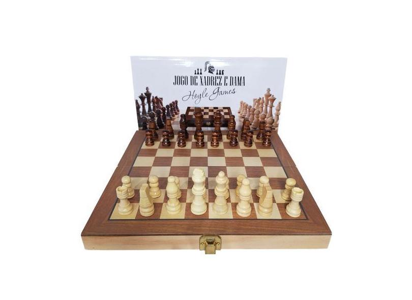 Jogo Xadrez E Dama Escolar Dobrável Peças E Tabuleiro De Madeira Educa