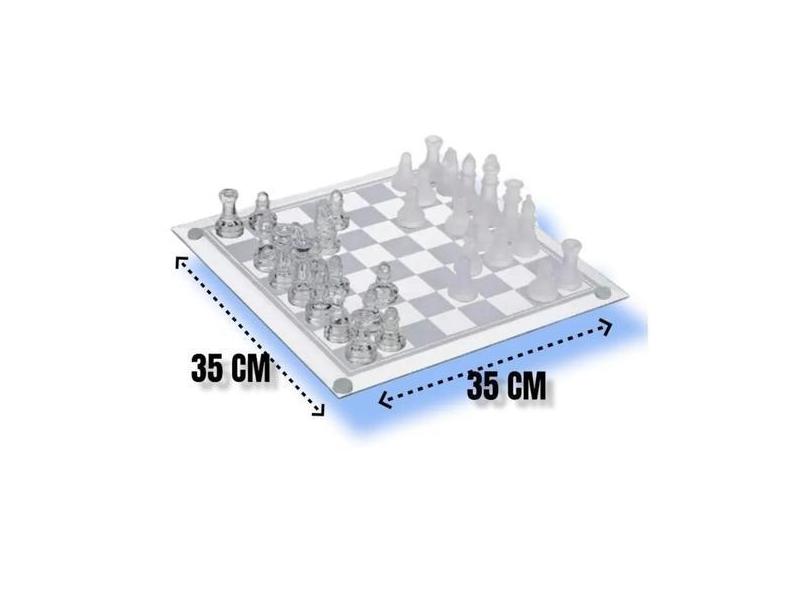 Jogo Xadrez Tabuleiro Peças Em Vidro Luxo Grande 35x35cm - GLASS CHESS