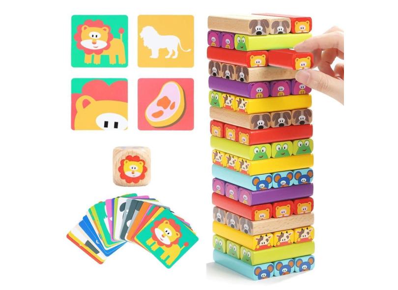 Jogos de tabuleiro empilháveis de blocos de madeira top bright Kids 4-8 anos