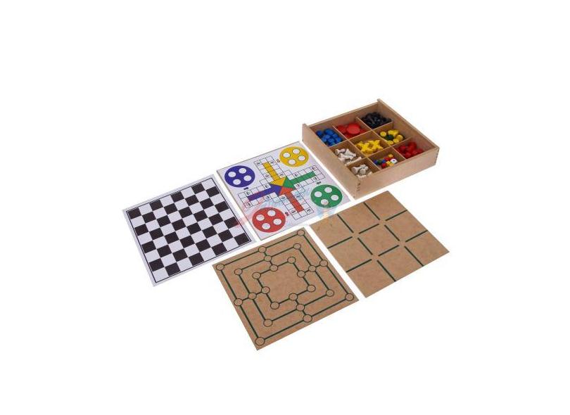 Jogos tabuleiros 5em1 xadrez,dama,ludo,jogo da velha e trilha - ZARAM