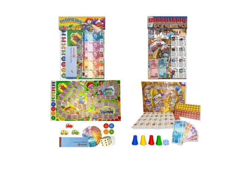 Kit 2 Com Jogo De Tabuleiro Mesa Shopkids + Banco Imobiliário Investin