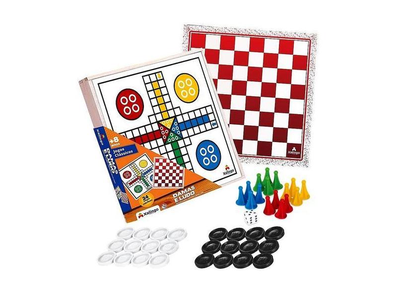 Kit 2 em 1 Jogo Tabuleiro de Ludo e Damas em Madeira Brinquedo Didátic