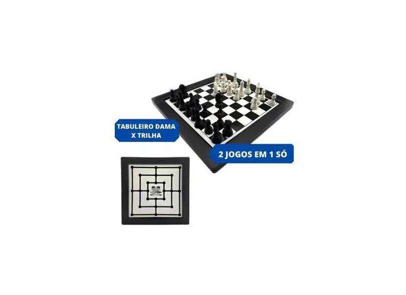 Kit Jogo Xadrez Trilha Tabuleiro Plástico 24cm 2 Em 1 Raciocínio - Dut