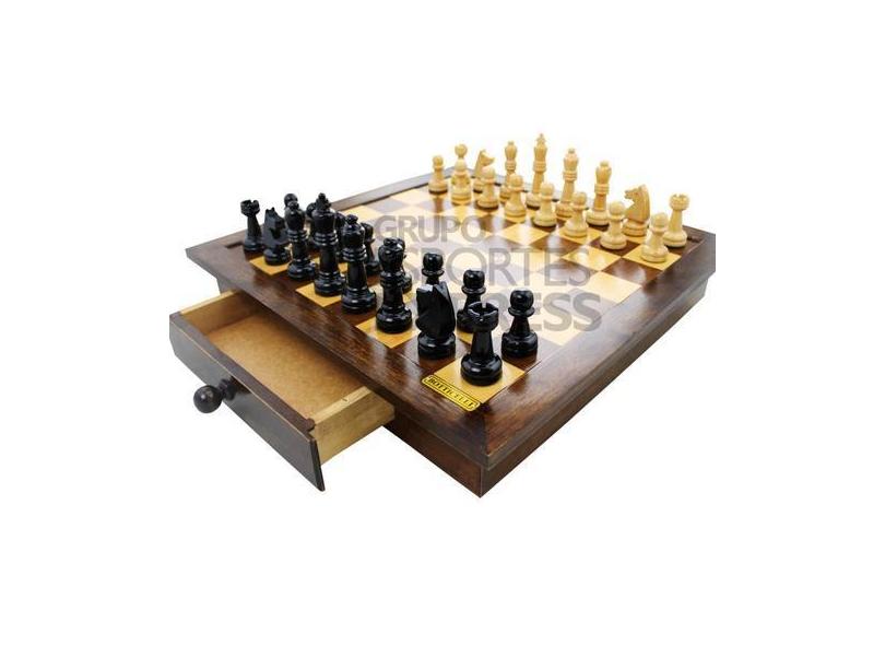 Tabuleiro Xadrez Luxo com Gavetas Integradas + Jogo de Xadrez em Madei