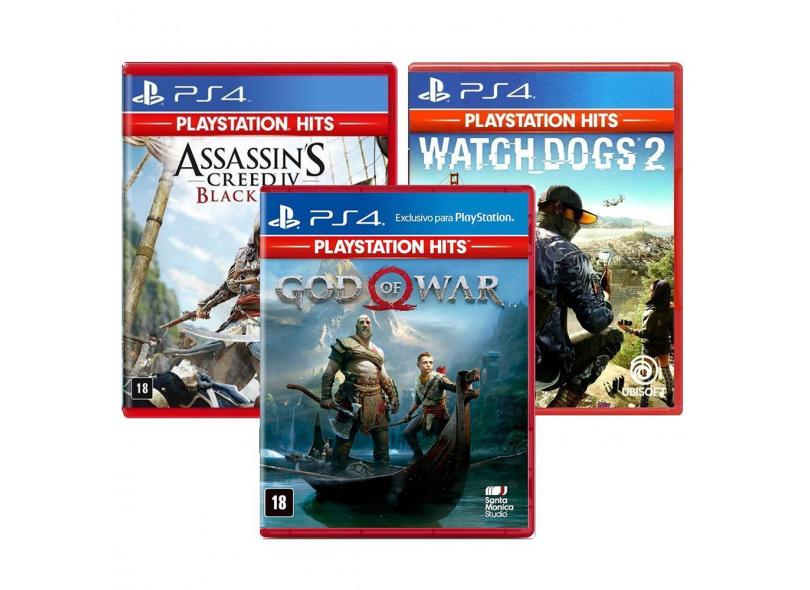 Combo De Jogos Ps4 - God Of War + Assassin's Creed Iv Black Flag + Watch Dogs 2