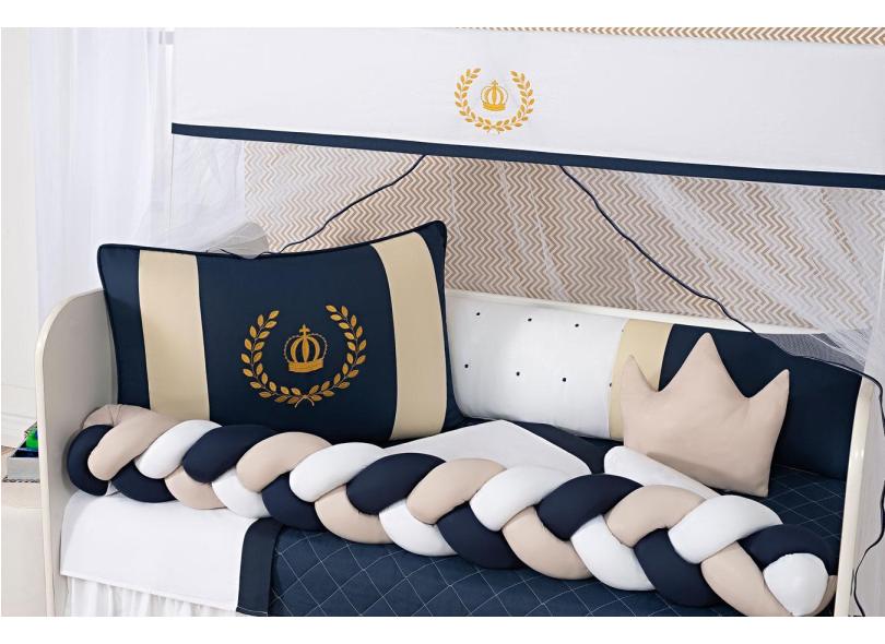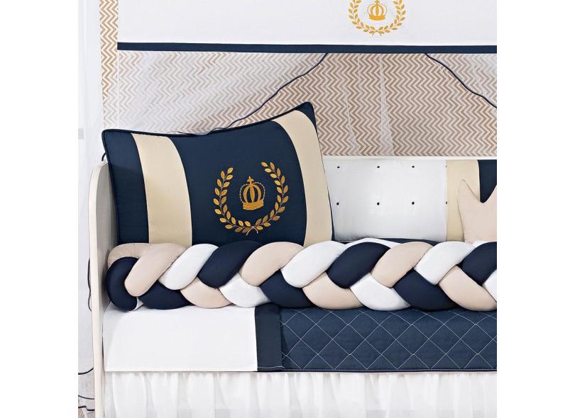 Kit Berço Trança Completo Menino Coroa Luxo Marinho 12 Peças