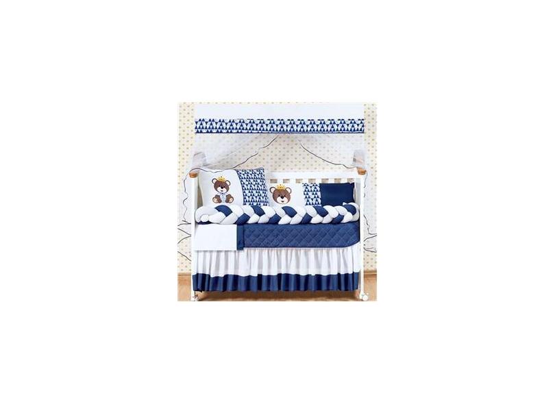 Kit Berço Trança Menino Urso Rei 11 Peças Com Saia Marinho