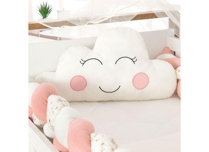Kit Protetor de Berço Menina Nuvem Estampado Rosê Padrão Americano 9 Peças 100% Algodão