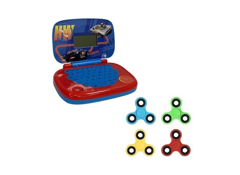Kit Laptop Infantil Educativo Candide Hot Wheels Bilíngue + 1 Fidget Spinner Sortido