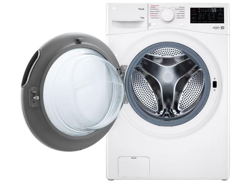 Com 14.0kg de capacidade de lavagem e 14.0kg para secar, a Lavadora LG WM14WGSP6 tem abertura do tipo Frontal e controle Eletromecânico, Painel Touch. Ela traz 12 programas de lavagem e seus principais recursos são Alças Laterais, Pés reguláveis, Trava de Segurança e Ajuste Automático da Água, Ajustes de Temperatura, Auto-Limpeza, Compatível com Assistente Pessoal, Controle por Smartphone, Display Digital, Programação da Lavagem, Sensor de Carga, Utilização de Água e Vapor, Água Quente. Entre as diversas funções disponíveis, a Lavadora da LG conta com dispenser para Alvejante, Amaciante, Sabão e Centrifugação, Ciclo Rápido de Lavagem, Enxágue, Esterilização de roupa, Lava Edredom, Lava Roupas Delicadas, Molho, Pré Lavagem, Tira manchas. Vale mencionar que sua velocidade de centrifugação é de 1400.0rpm. O cesto da Lavadora é constituído por Aço Inox. A WM14WGSP6 é uma máquina da LG que pesa 81.0kg. Além disso, ela conta com 94.0cm de altura, 64.5cm de largura, e 77.0cm de profundidade, para que você saiba se ela vai caber na sua área.