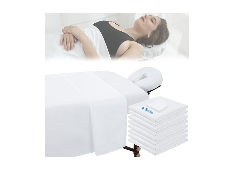 O menor preço encontrado no Brasil para 4 conjuntos de lençóis de microfibra para mesa de massagem, 3 peças, capa de cama de massagem macia, sem rugas, inclui lençol com elástico de massagem, lençóis de massagem e capa de berço facial para atualmente é R$ 475,63.