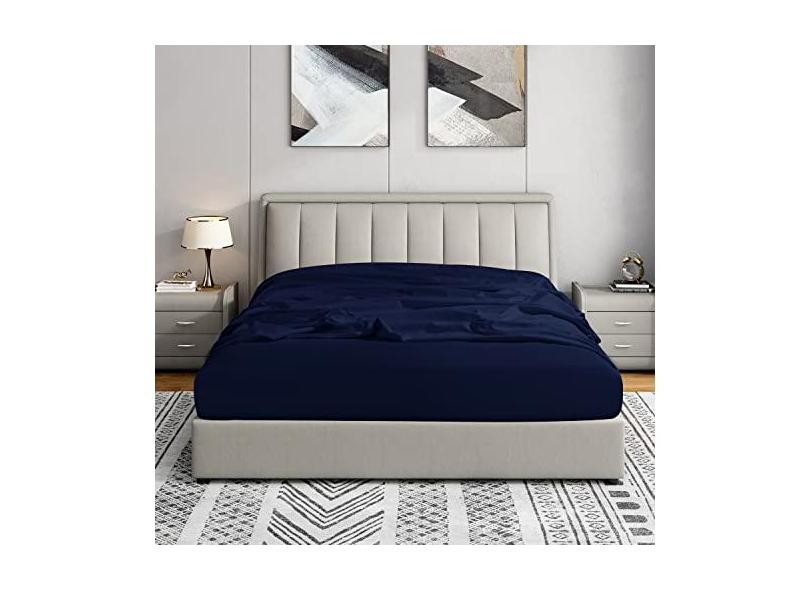 Cathay Home Lençol King com elástico duplo escovado ultramacio - resistente a rugas e desbotamento - lençol com elástico de 53 cm com bolso extra profundo apenas - Bom ajuste para colchão de