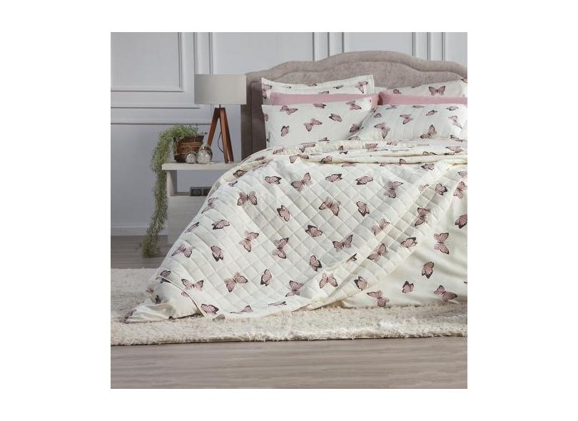 Cobre Leito Colcha Solteiro + Lençol Kit 4 Peças Algodão - Lenny Enxov