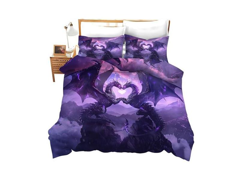 Conjunto de cama de dragão roxo, decoração de dragão, capa de edredom com estampa animal, macio, respirável, para meninas, meninos, crianças, adolescentes, adultos, homens, mulheres, com 2 fronhas