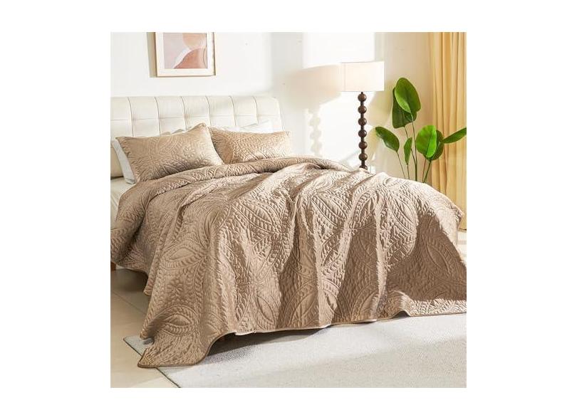 Conjunto de colcha de veludo tamanho Queen 233 cm x 243 cm, colcha de cama leve ultramacia com 3 peças, conjunto de edredom de veludo acolchoado com moedas reversíveis para todas as estações, com 2