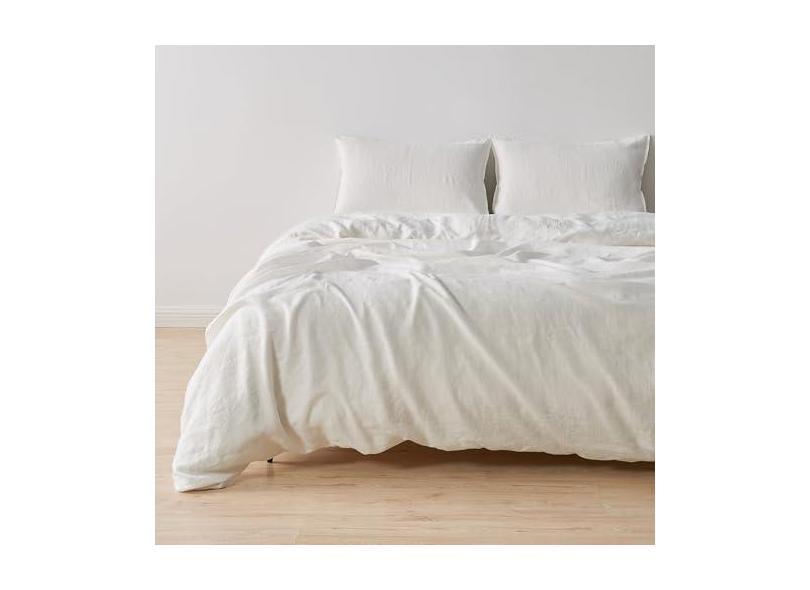 Conjunto de edredom de linho europeu 100% puro - 3 peças de capa de edredom tamanho casal/queen com fronhas - respirável para dormir quente, conjunto de cama durável - laços de canto e fecho de zíper