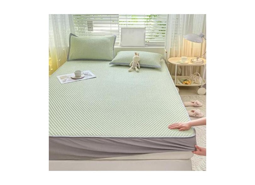 Conjunto de lençóis com elástico para cama de látex, refrigerador de verão, tapete de ar condicionado macio, saia de cama, capa protetora de colchão antiderrapante sólida lavável, verde, 150 x 200 cm