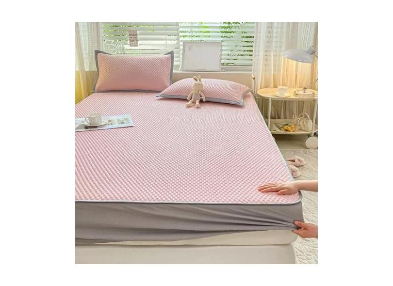 Conjunto de lençóis com elástico para cama de látex, refrigerador de verão, tapete de ar condicionado macio, saia de cama, lavável, capa protetora de colchão antiderrapante sólida, rosa, 120 x 200 cm