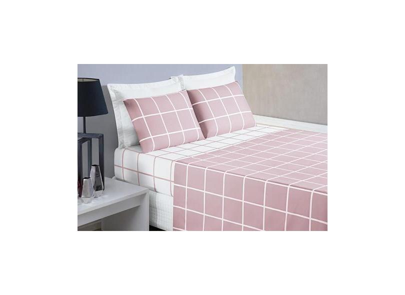 Conjunto Lençol Super King Austin Xadrez 200 Fios Rosa - Jm Enxovais