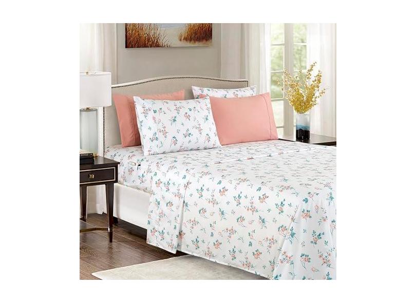 Elegant Comfort Conjunto de lençóis de 6 peças mais macios e aconchegantes – microfibra de qualidade premium de hotel 1500 – bolso profundo, resistente a vincos, conjunto de lençóis florais de 6