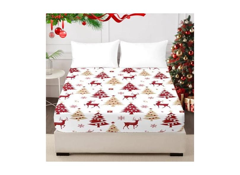 HCORA Apenas lençol de elástico de Natal – Lençol de microfibra premium 1800 rena com bolso profundo de até 40,6 cm – Lençol de baixo ultramacio resistente ao encolhimento e desbotamento (casal)