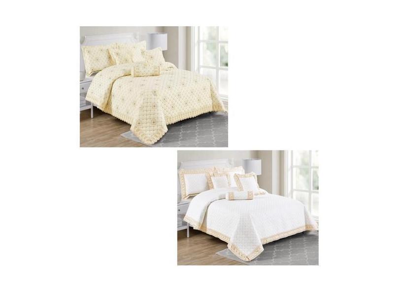 Jogo Cama Casal Queen Size Crystal Bordada Colcha 200 Fios - De Luca E