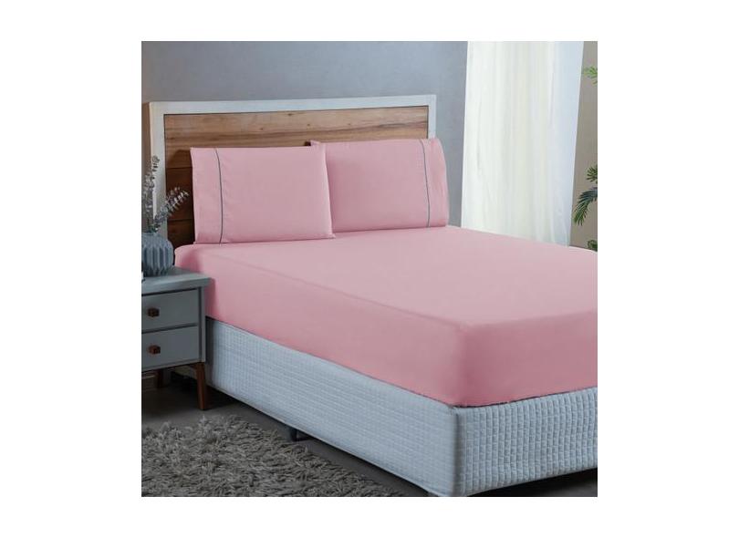 Jogo Cama King Size Com Elástico E Fronha Ponto Palito 3 Peças Algodão