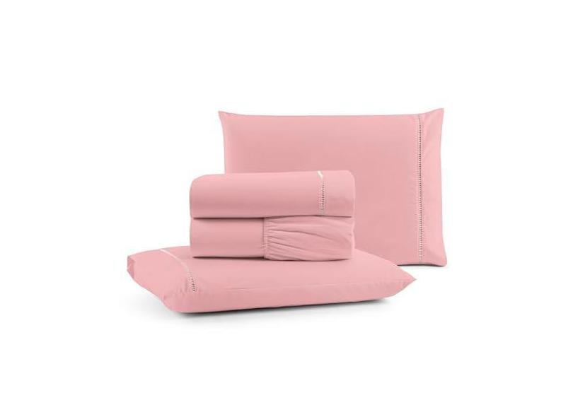 Jogo Cama Lençol Bali Queen Percal 180 Fios 100% Algodão Ponto Palito 4 Peças - Rosa