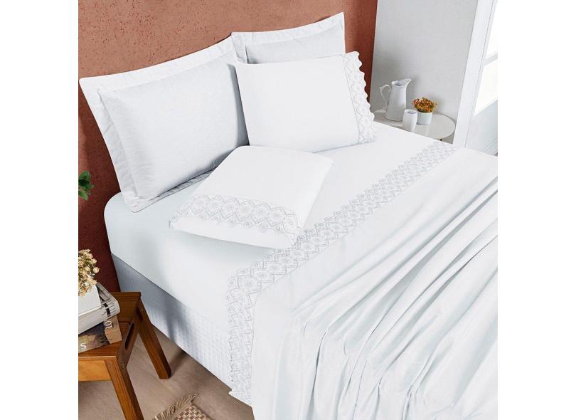 O menor preço encontrado no Brasil para Jogo Cama Lençol Bouclê Casal Padrão Micro Percal 200 Fios c/ Laise Bordada 4 Peças - Branco Neve atualmente é R$ 209,39.