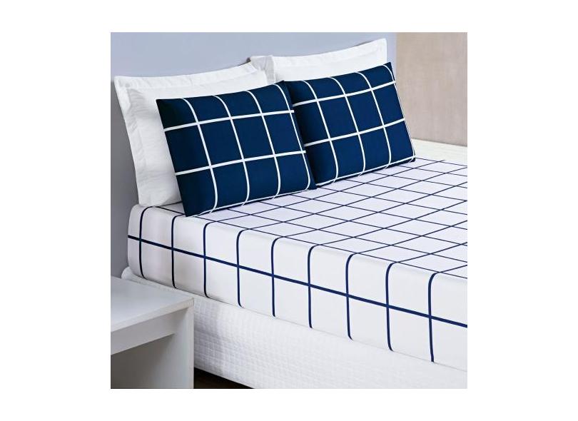 Jogo Cama Lençol Brooklyn Casal Quadriculado Micropercal 200 Fios 3 Pe