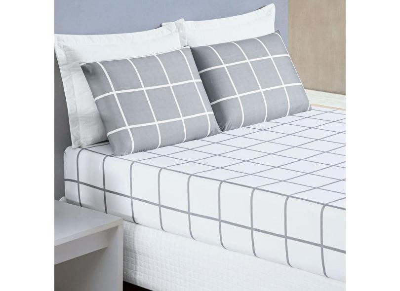 Jogo Cama Lençol Casal 200 Fios 3 Peças Cinza