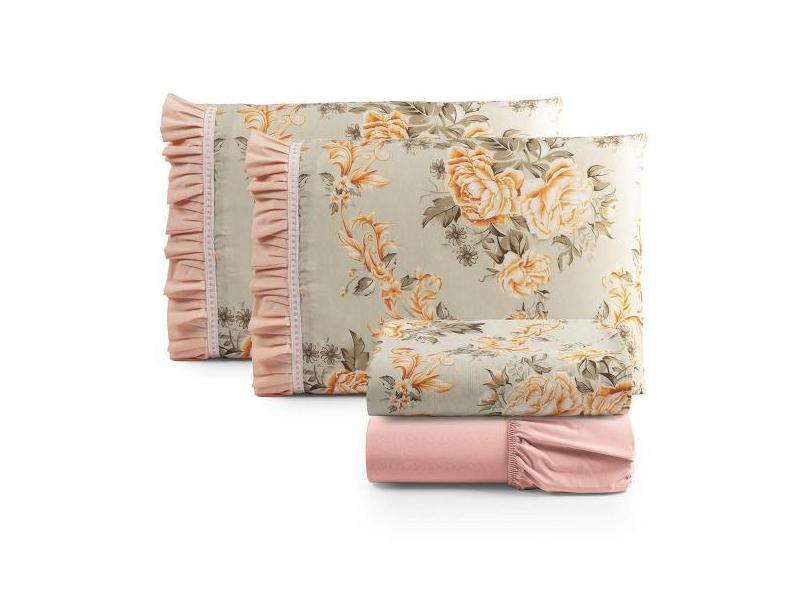 Jogo Cama Lençol Casal Minuano 100% Algodão 4 Peças - Rosê - Casa Show