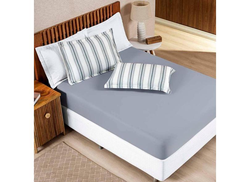 Jogo Cama Lençol Daily Queen Malha 100% Algodão Listrado 3 Peças - Cinza