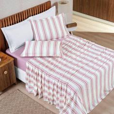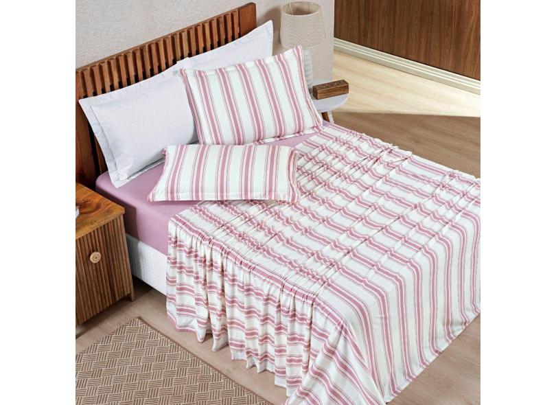 Jogo Cama Lençol Daily Queen Malha 100% Algodão Listrado 4 Peças - Rosê