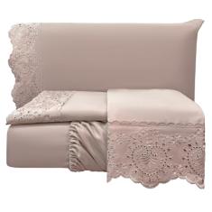 Jogo Cama Lençol Detail Casal Padrão Bordado Guipir Bordado Inglês Percal 300 Fios 4 Peças - Roxo Malva