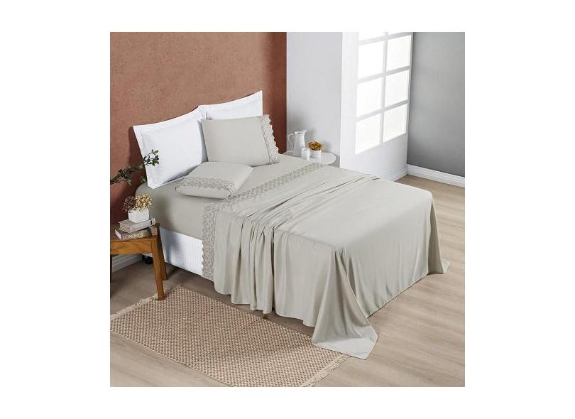 Jogo Cama Lençol Divino Lese Casal 4 Peças - Amendoa - Casa Show Enxov