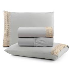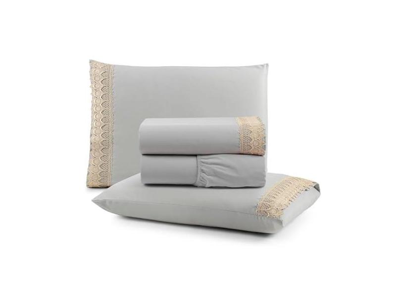O menor preço encontrado no Brasil para Jogo Cama Lençol Haia King Percal 200 Fios 100% Algodão Guipir Bordado Inglês 4 Peças - Cinza atualmente é R$ 254,64.