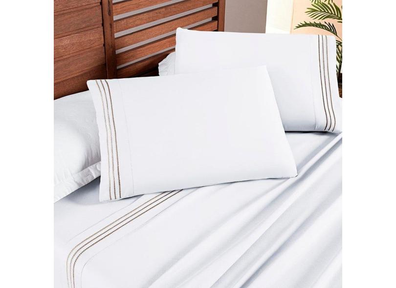 O menor preço encontrado no Brasil para Jogo Cama Lençol Honore Queen Micro Percal 200 Fios c/ Detalhes Bordados 4 Peças - Branco Neve Taupe atualmente é R$ 136,09.
