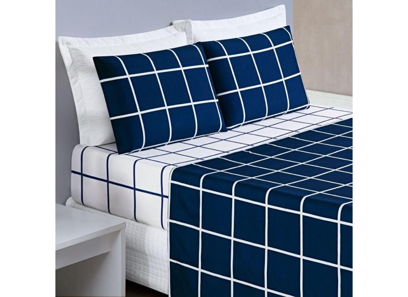 Jogo Cama Lençol King 200 Fios 4 Peças Azul Marinho