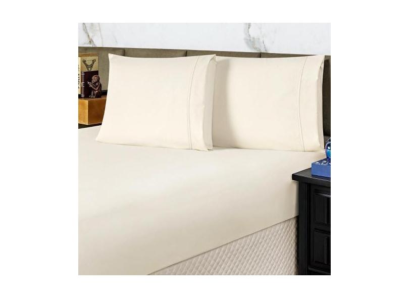 Jogo Cama Lençol King Conforto Percal 300 Fios 3 Peças Palha - Casa Sh