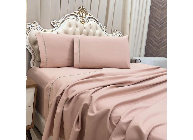 Jogo Cama Lençol King Realce Percal 400 Fios 3 Peças - Rosê