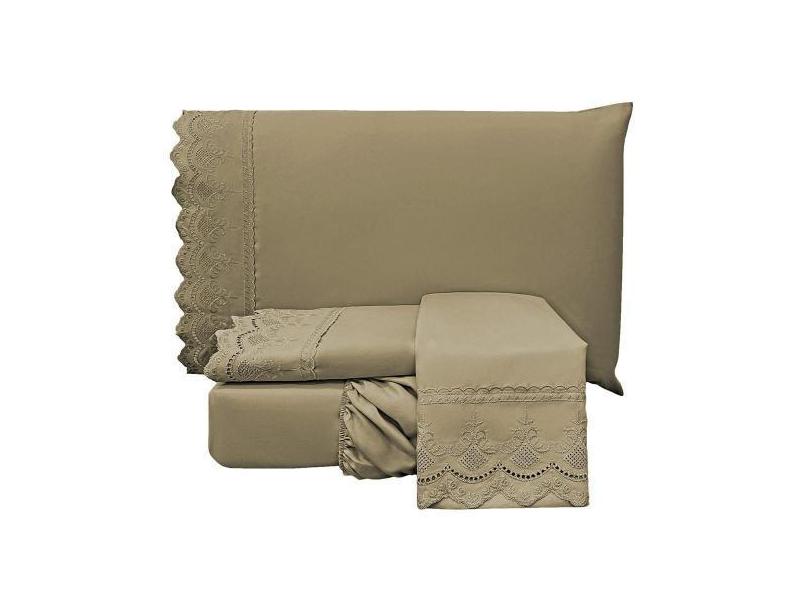 Jogo Cama Lençol King Supremo Micropercal 300 Fios - Cáqui - Casa Show
