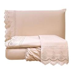 Jogo Cama Lençol Loren Queen Bordado Inglês Micro Percal 300 Fios 4 Pe